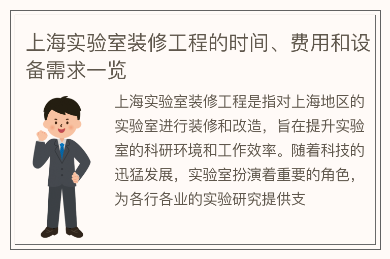 上海实验室装修工程的时间、费用和设备需求一览