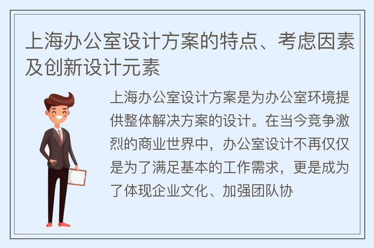 上海办公室设计方案的特点、考虑因素及创新设计元素