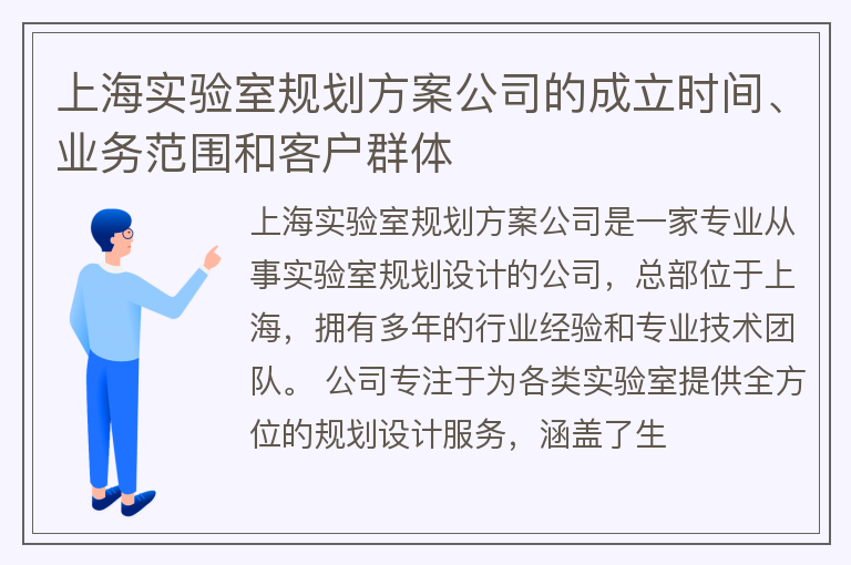 上海实验室规划方案公司的成立时间、业务范围和客户群体