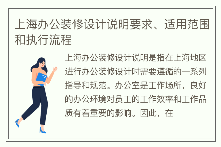 上海办公装修设计说明是指在上海地区进行办公装修设计时需要遵循的一系列指导和规范。办公室是工作场所,良好的办公环境对员工的工作效率和工作品质有着重要的影响。因此,在......【点击详情】