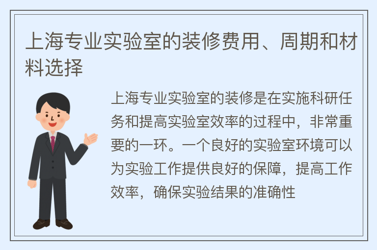 上海专业实验室的装修是在实施科研任务和提高实验室效率的过程中,非常重要的一环。一个良好的实验室环境可以为实验工作提供良好的保障,提高工作效率,确保实验结果的准确性......【点击详情】