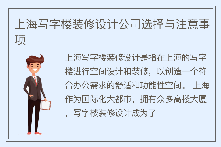 上海写字楼装修设计是指在上海的写字楼进行空间设计和装修,以创造一个符合办公需求的舒适和功能性空间。 上海作为国际化大都市,拥有众多高楼大厦,写字楼装修设计成为了......【点击详情】