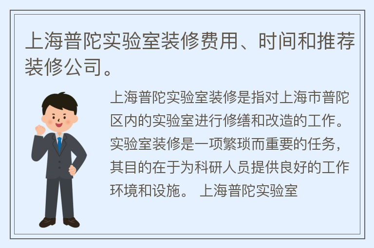 上海普陀实验室装修费用、时间和推荐装修公司。