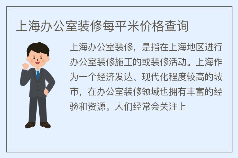 上海办公室装修,是指在上海地区进行办公室装修施工的或装修活动。上海作为一个经济发达、现代化程度较高的城市,在办公室装修领域也拥有丰富的经验和资源。人们经常会关注上......【点击详情】