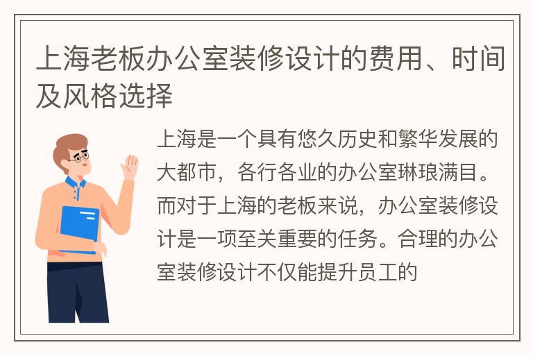 上海是一个具有悠久历史和繁华发展的大都市,各行各业的办公室琳琅满目。而对于上海的老板来说,办公室装修设计是一项至关重要的任务。合理的办公室装修设计不仅能提升员工的......【点击详情】