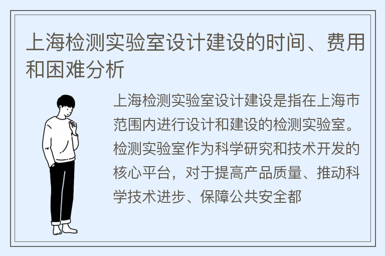 上海检测实验室设计建设是指在上海市范围内进行设计和建设的检测实验室。检测实验室作为科学研究和技术开发的核心平台,对于提高产品质量、推动科学技术进步、保障公共安全都......【点击详情】