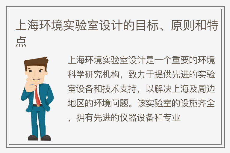 上海环境实验室设计是一个重要的环境科学研究机构,致力于提供先进的实验室设备和技术支持,以解决上海及周边地区的环境问题。该实验室的设施齐全,拥有先进的仪器设备和专业......【点击详情】