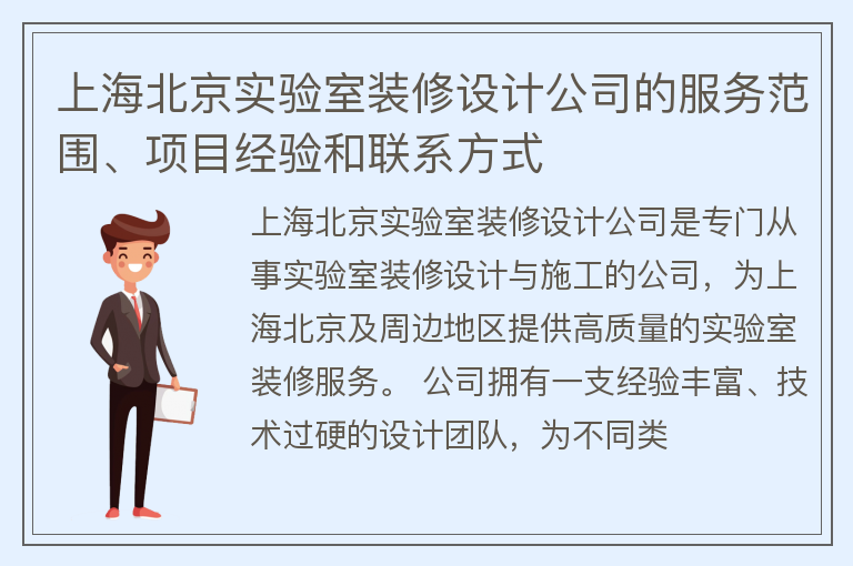 上海北京实验室装修设计公司的服务范围、项目经验和联系方式