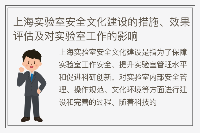 上海实验室安全文化建设的措施、效果评估及对实验室工作的影响