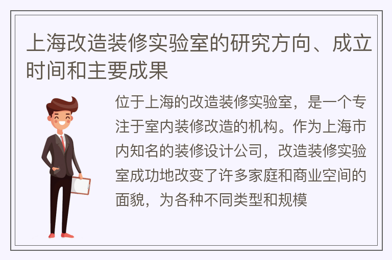 上海改造装修实验室的研究方向、成立时间和主要成果