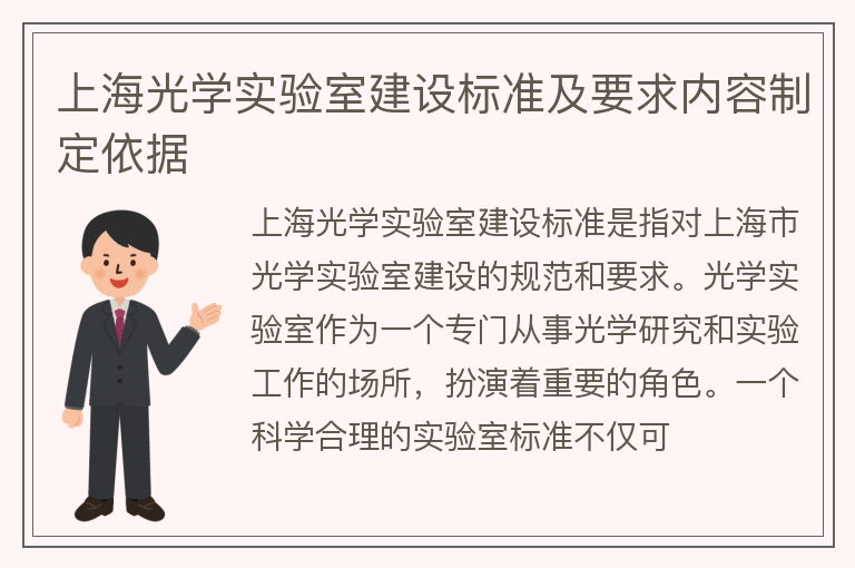 上海光学实验室建设标准是指对上海市光学实验室建设的规范和要求。光学实验室作为一个专门从事光学研究和实验工作的场所,扮演着重要的角色。一个科学合理的实验室标准不仅可......【点击详情】