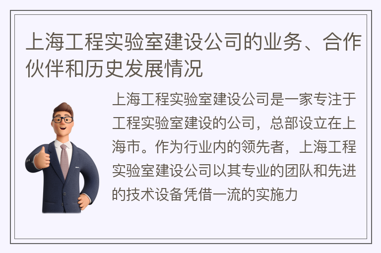上海工程实验室建设公司的业务、合作伙伴和历史发展情况