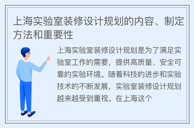 上海实验室装修设计规划是为了满足实验室工作的需要,提供高质量、安全可靠的实验环境。随着科技的进步和实验技术的不断发展,实验室装修设计规划越来越受到重视。在上海这个......【点击详情】