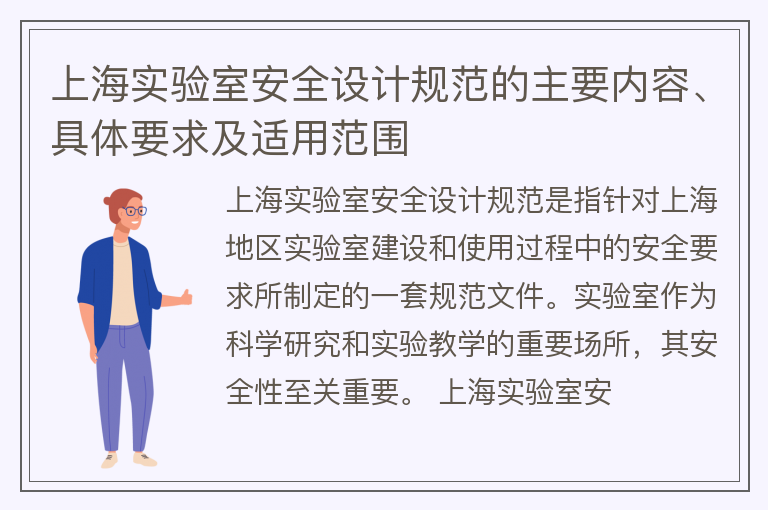 上海实验室安全设计规范的主要内容、具体要求及适用范围