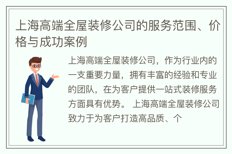 上海高端全屋装修公司的服务范围、价格与成功案例