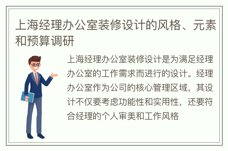 上海经理办公室装修设计是为满足经理办公室的工作需求而进行的设计。经理办公室作为公司的核心管理区域,其设计不仅要考虑功能性和实用性,还要符合经理的个人审美和工作风格......【点击详情】
