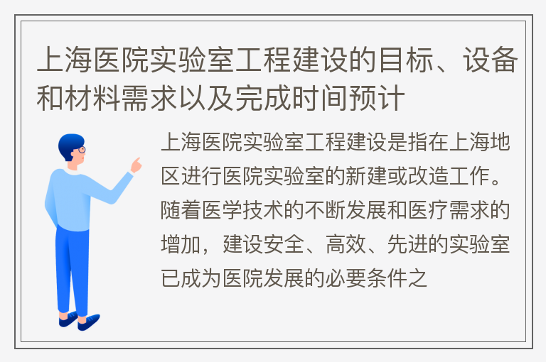 上海医院实验室工程建设的目标、设备和材料需求以及完成时间预计