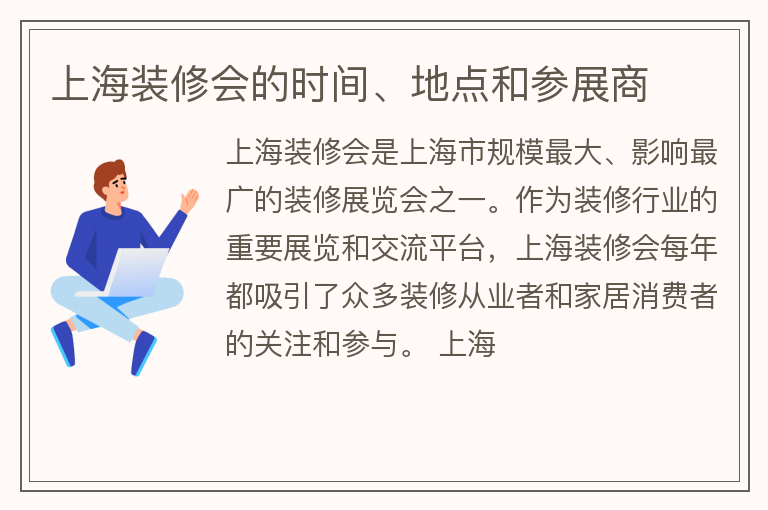 上海装修会是上海市规模最大、影响最广的装修展览会之一。作为装修行业的重要展览和交流平台,上海装修会每年都吸引了众多装修从业者和家居消费者的关注和参与。 上海......【点击详情】