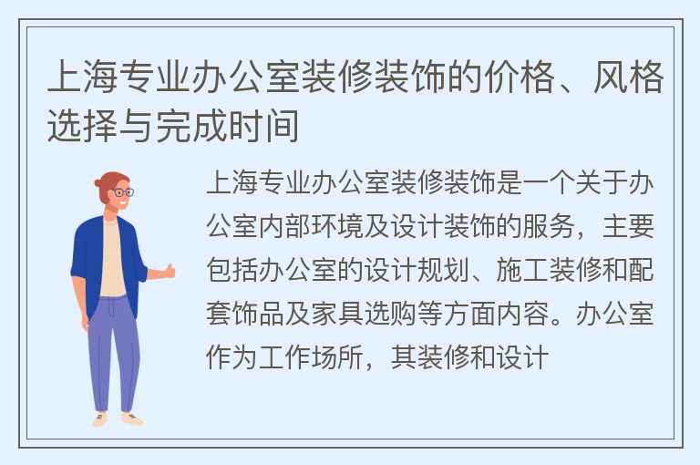 上海专业办公室装修装饰的价格、风格选择与完成时间