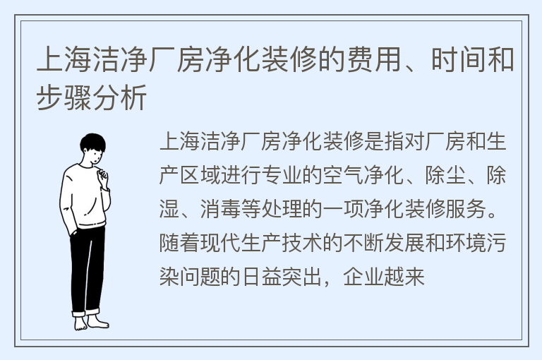 上海洁净厂房净化装修的费用、时间和步骤分析