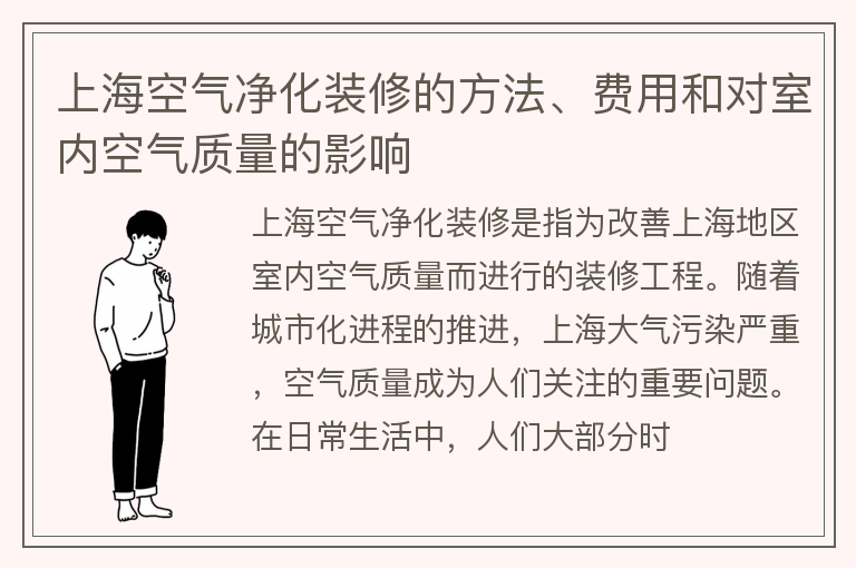 上海空气净化装修的方法、费用和对室内空气质量的影响