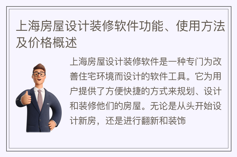 上海房屋设计装修软件是一种专门为改善住宅环境而设计的软件工具。它为用户提供了方便快捷的方式来规划、设计和装修他们的房屋。无论是从头开始设计新房,还是进行翻新和装饰......【点击详情】