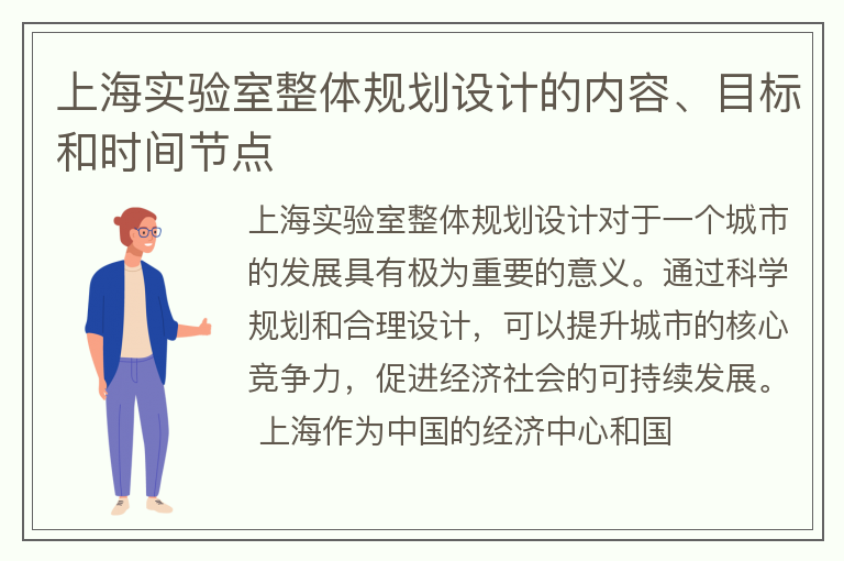 上海实验室整体规划设计对于一个城市的发展具有极为重要的意义。通过科学规划和合理设计,可以提升城市的核心竞争力,促进经济社会的可持续发展。 上海作为中国的经济中心和国......【点击详情】