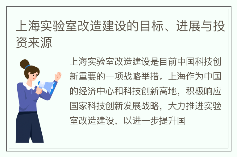 上海实验室改造建设是目前中国科技创新重要的一项战略举措。上海作为中国的经济中心和科技创新高地,积极响应国家科技创新发展战略,大力推进实验室改造建设,以进一步提升国......【点击详情】