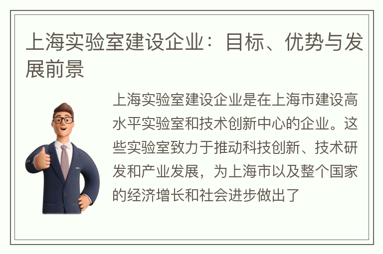 上海实验室建设企业是在上海市建设高水平实验室和技术创新中心的企业。这些实验室致力于推动科技创新、技术研发和产业发展,为上海市以及整个国家的经济增长和社会进步做出了......【点击详情】
