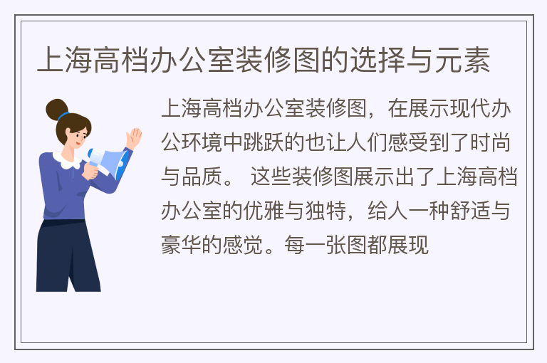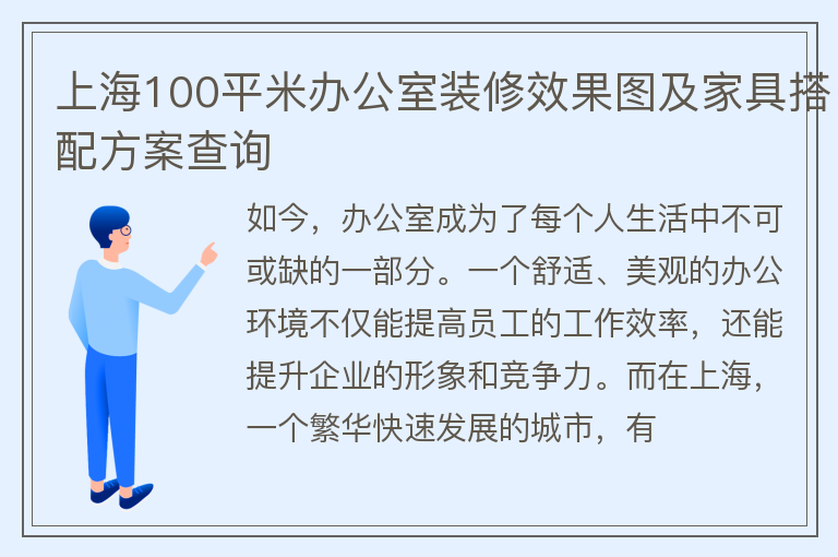 如今,办公室成为了每个人生活中不可或缺的一部分。一个舒适、美观的办公环境不仅能提高员工的工作效率,还能提升企业的形象和竞争力。而在上海,一个繁华快速发展的城市,有......【点击详情】