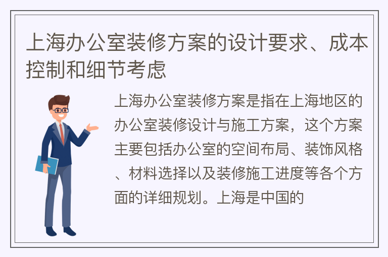 上海办公室装修方案的设计要求、成本控制和细节考虑