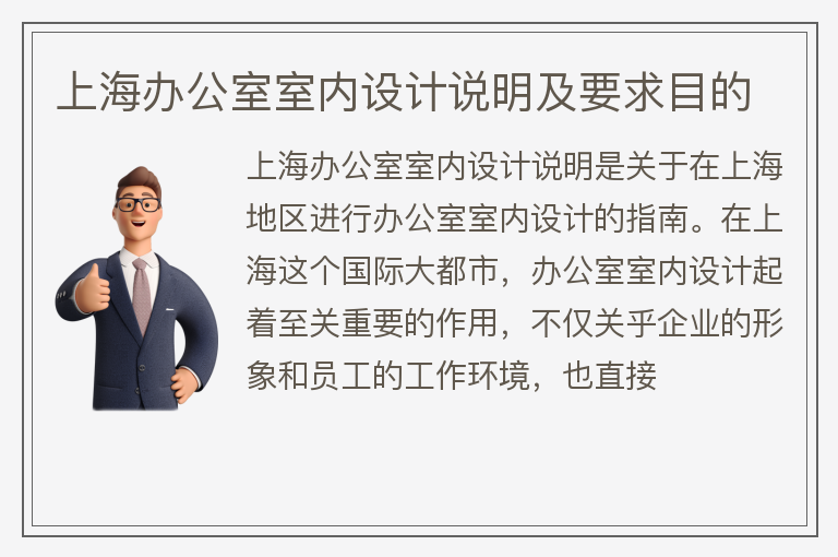 上海办公室室内设计说明是关于在上海地区进行办公室室内设计的指南。在上海这个国际大都市,办公室室内设计起着至关重要的作用,不仅关乎企业的形象和员工的工作环境,也直接......【点击详情】