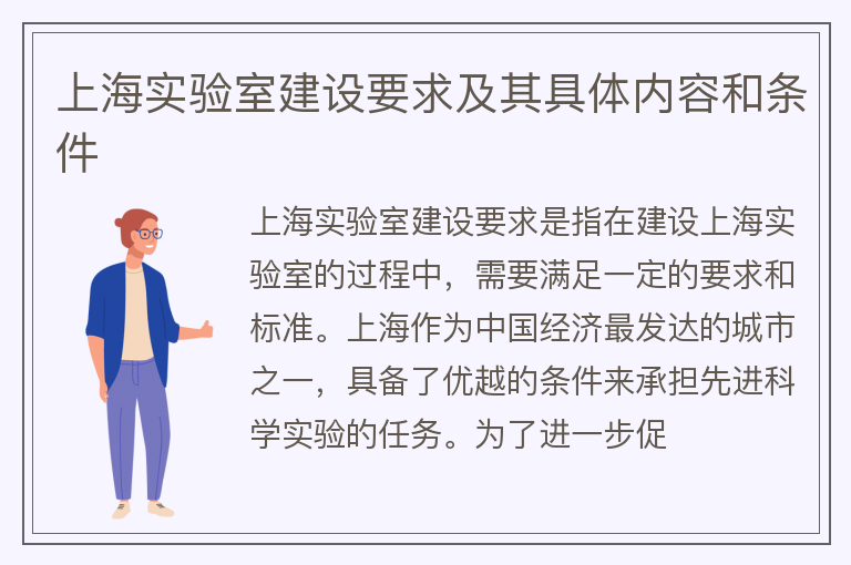 上海实验室建设要求是指在建设上海实验室的过程中,需要满足一定的要求和标准。上海作为中国经济最发达的城市之一,具备了优越的条件来承担先进科学实验的任务。为了进一步促......【点击详情】