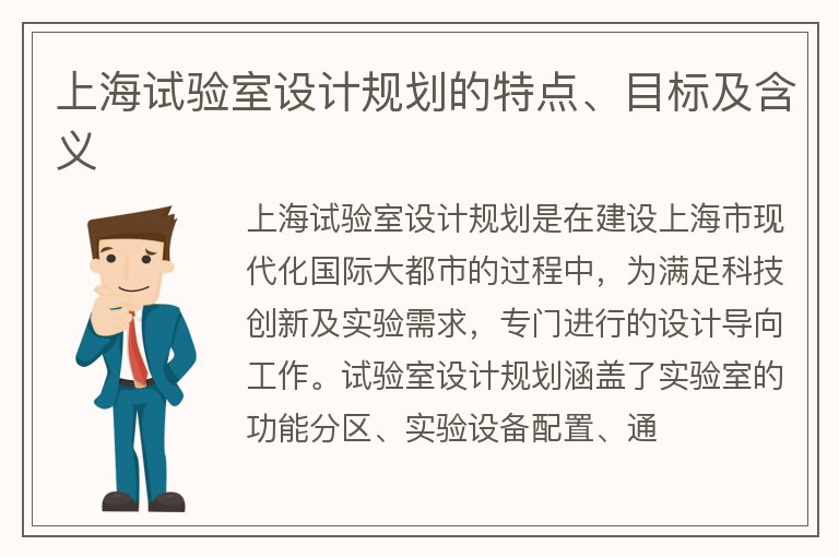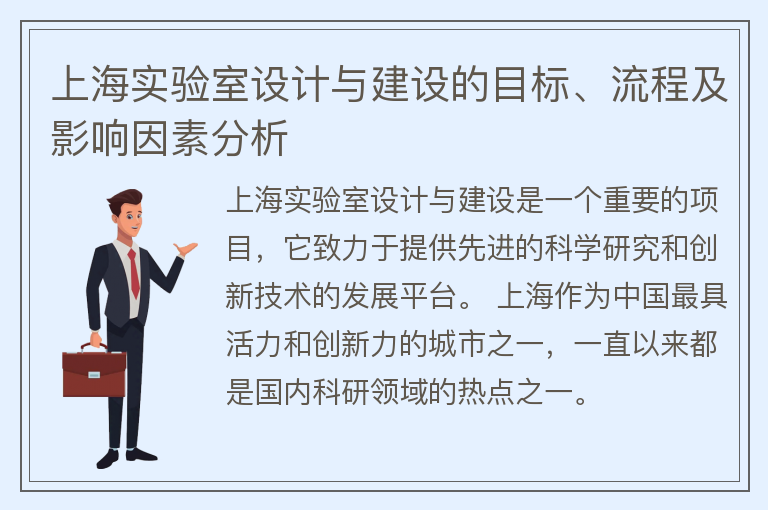 上海实验室设计与建设是一个重要的项目,它致力于提供先进的科学研究和创新技术的发展平台。 上海作为中国最具活力和创新力的城市之一,一直以来都是国内科研领域的热点之一。......【点击详情】