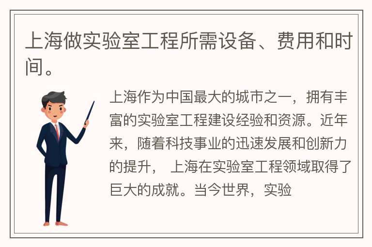 上海作为中国最大的城市之一,拥有丰富的实验室工程建设经验和资源。近年来,随着科技事业的迅速发展和创新力的提升, 上海在实验室工程领域取得了巨大的成就。当今世界,实验......【点击详情】
