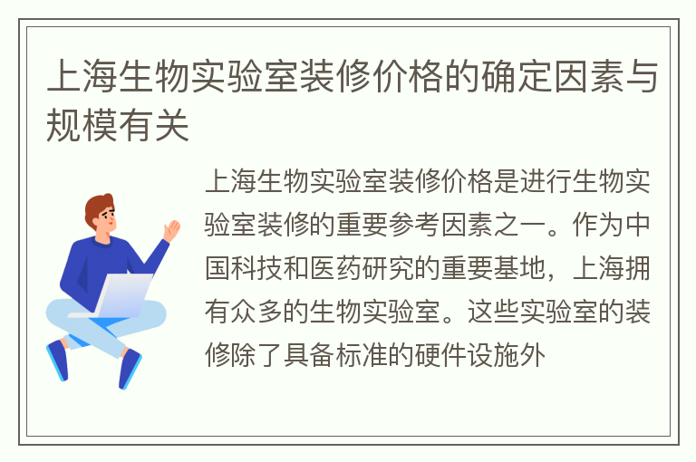 上海生物实验室装修价格是进行生物实验室装修的重要参考因素之一。作为中国科技和医药研究的重要基地,上海拥有众多的生物实验室。这些实验室的装修除了具备标准的硬件设施外......【点击详情】