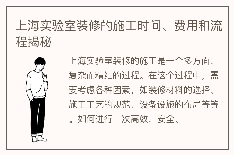 上海实验室装修的施工时间、费用和流程揭秘