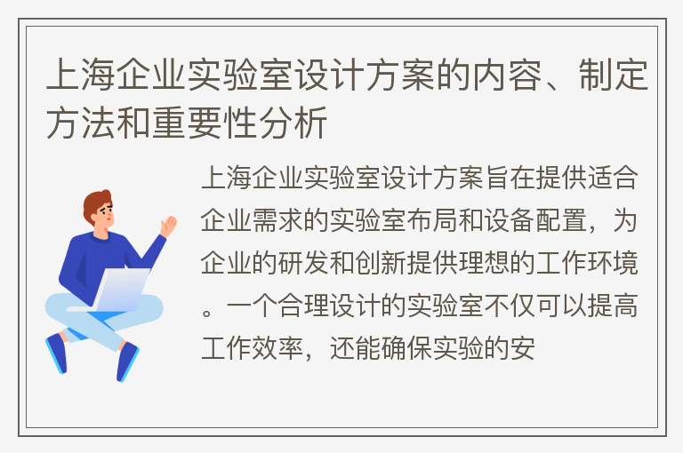 上海企业实验室设计方案的内容、制定方法和重要性分析