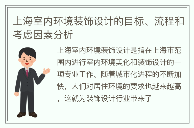 上海室内环境装饰设计的目标、流程和考虑因素分析