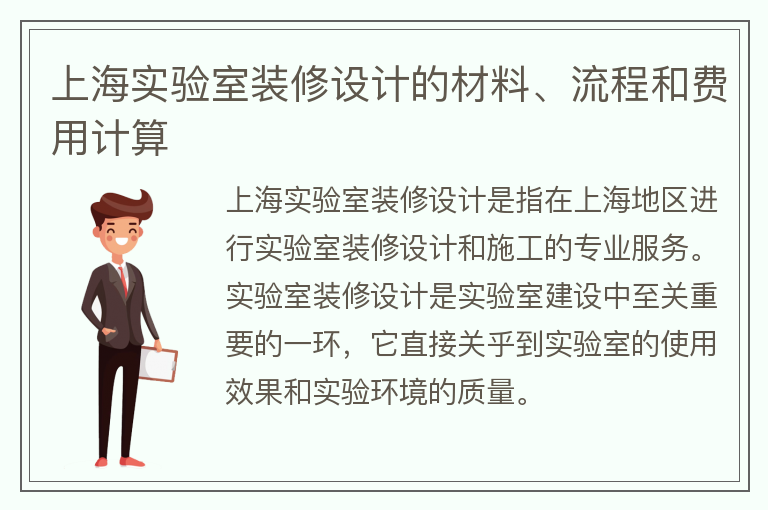 上海实验室装修设计是指在上海地区进行实验室装修设计和施工的专业服务。实验室装修设计是实验室建设中至关重要的一环,它直接关乎到实验室的使用效果和实验环境的质量。......【点击详情】