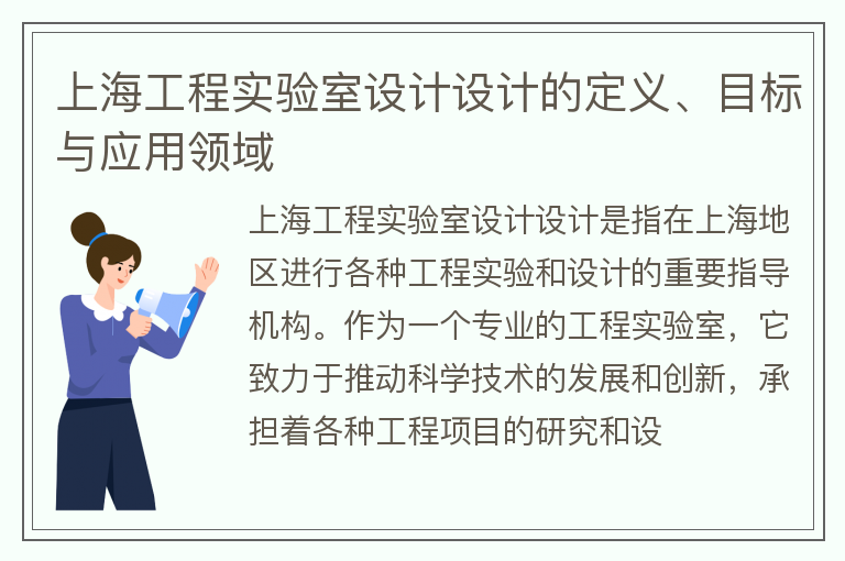 上海工程实验室设计设计是指在上海地区进行各种工程实验和设计的重要指导机构。作为一个专业的工程实验室,它致力于推动科学技术的发展和创新,承担着各种工程项目的研究和设......【点击详情】