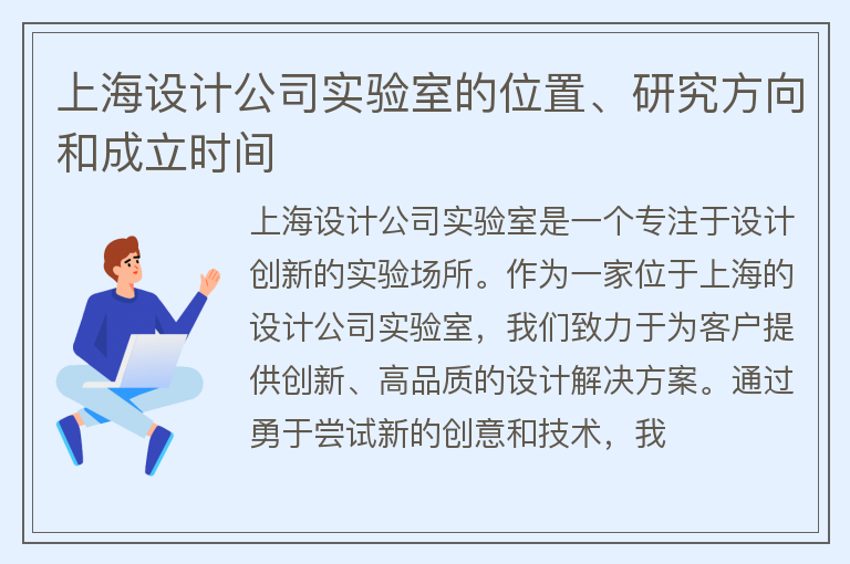 上海设计公司实验室是一个专注于设计创新的实验场所。作为一家位于上海的设计公司实验室,我们致力于为客户提供创新、高品质的设计解决方案。通过勇于尝试新的创意和技术,我......【点击详情】