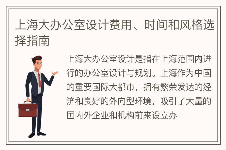 上海大办公室设计是指在上海范围内进行的办公室设计与规划。上海作为中国的重要国际大都市,拥有繁荣发达的经济和良好的外向型环境,吸引了大量的国内外企业和机构前来设立办......【点击详情】