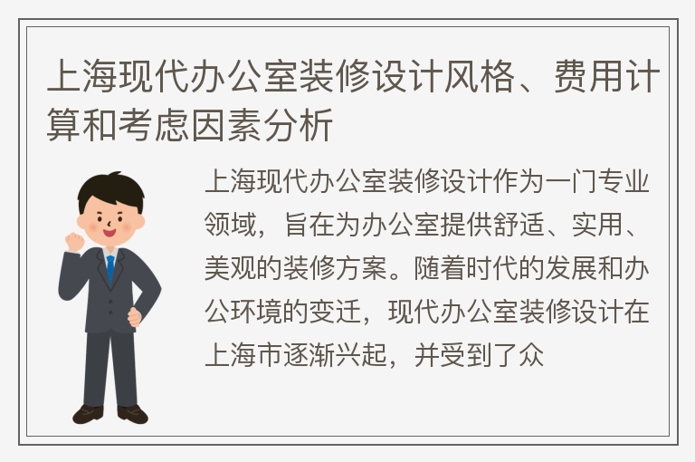 上海现代办公室装修设计风格、费用计算和考虑因素分析
