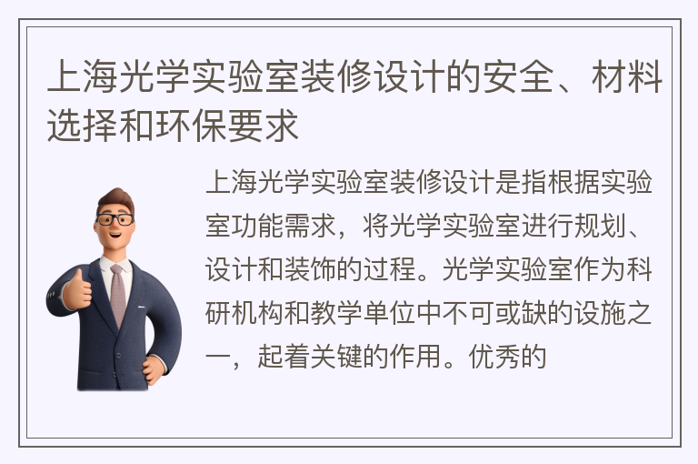 上海光学实验室装修设计的安全、材料选择和环保要求