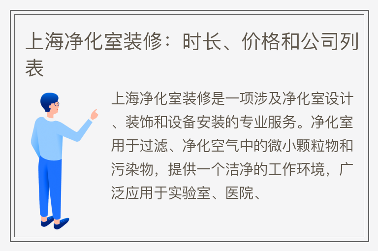 上海净化室装修:时长、价格和公司列表