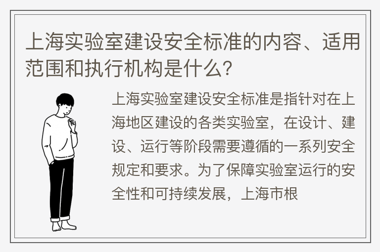 上海实验室建设安全标准的内容、适用范围和执行机构是什么?