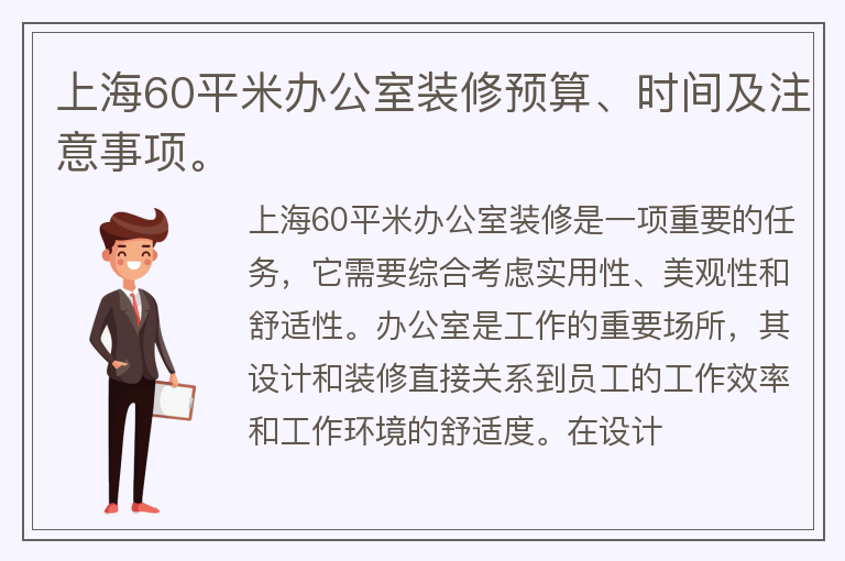上海60平米办公室装修预算、时间及注意事项。
