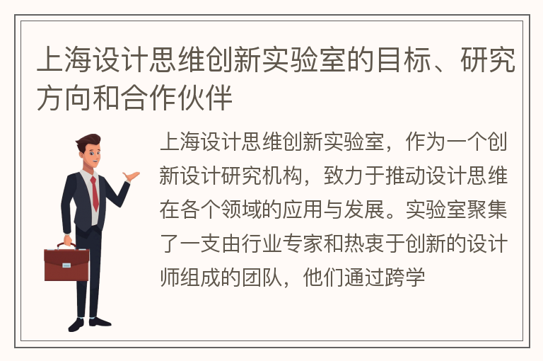 上海设计思维创新实验室的目标、研究方向和合作伙伴