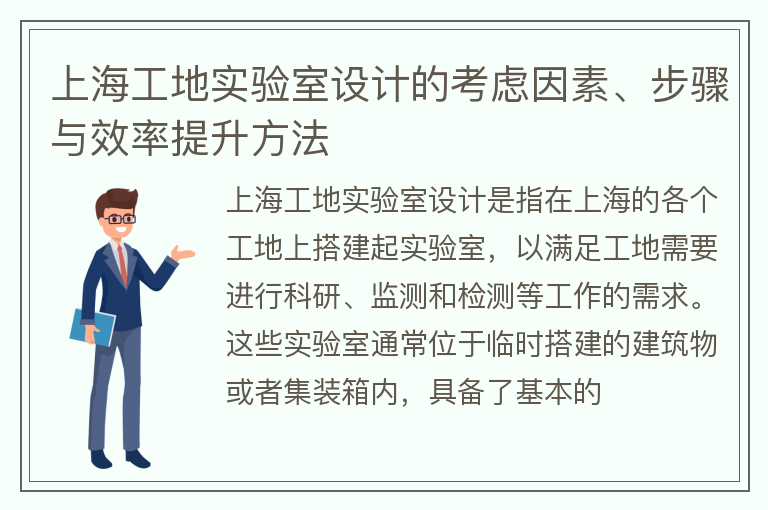 上海工地实验室设计的考虑因素、步骤与效率提升方法